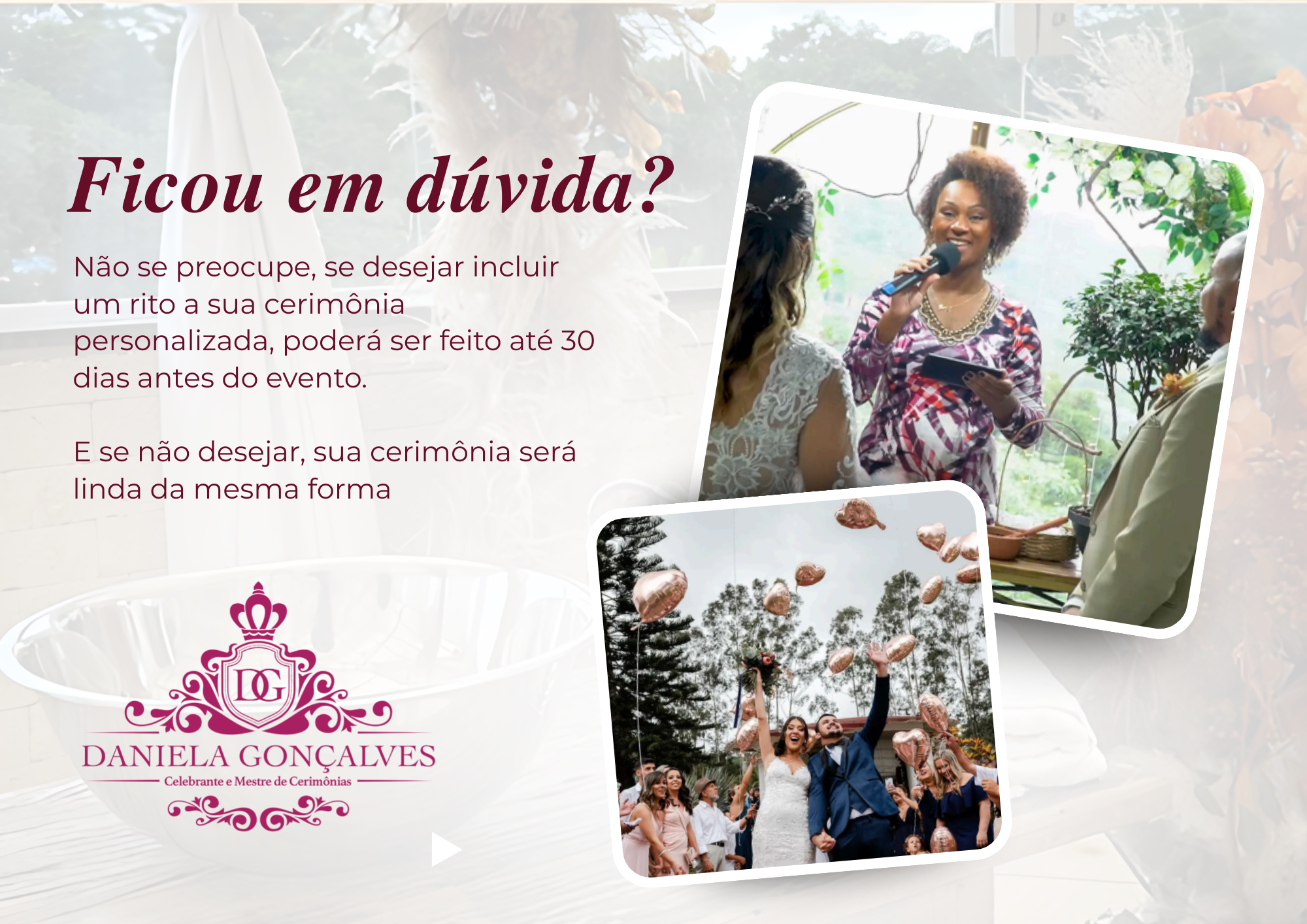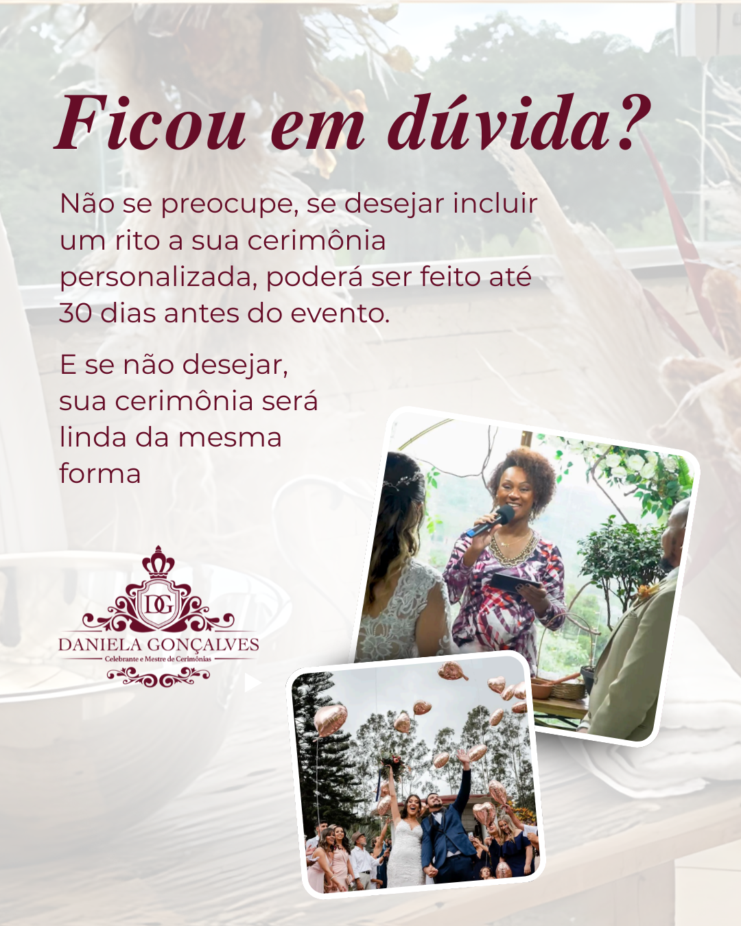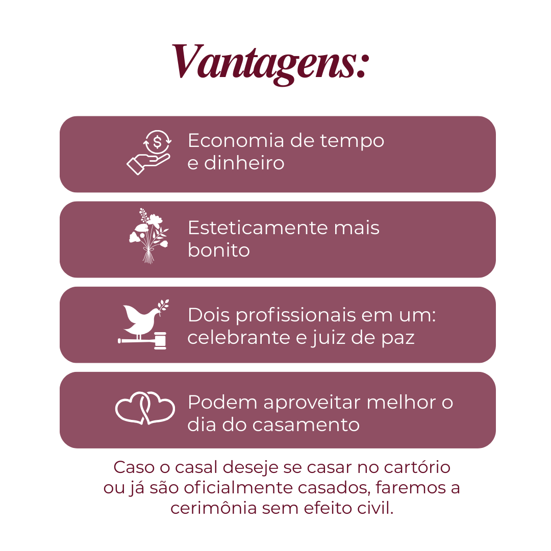 Toda a oficialização civil é realizada por mim, no mesmo dia e local da celebração de forma prática, elegante e totalmente válida perante a lei.